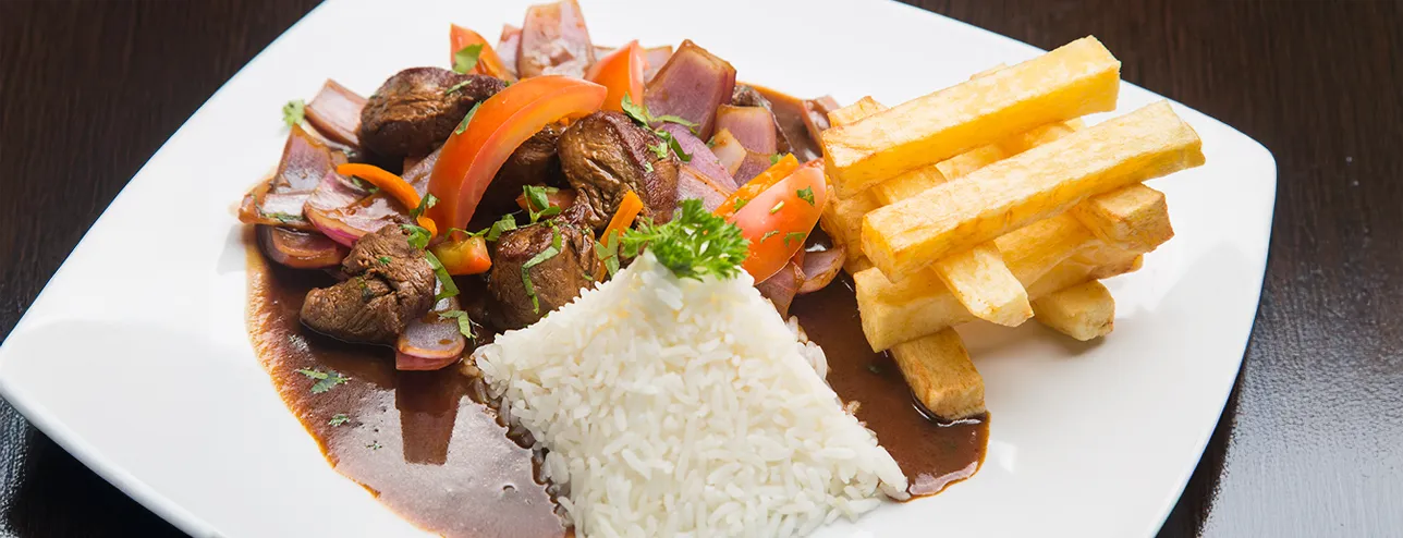7. Mezcle el lomo saltado con las papas fritas y sirva con el arroz.